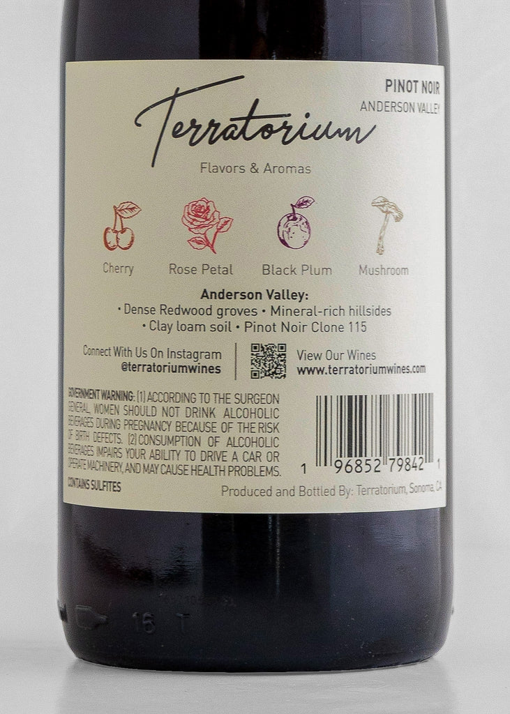 At the first pour this wine’s brilliant ruby-garnet color hints at the elegance of flavors and aromas to come. Floral, earthy aromas are mixed with perfectly ripe dark red and black fruits. Bright cherry and black plum flavors are accentuated by rose petal and mushroom as this wine opens up in glass. On the palate, the wine is lush and elegant in its structure retaining a long and clean finish accentuated by spice. This wine has the ability to pair well with a wide range of foods and high aging potential. This wine is 100% Clone 115 Pinot Noir.