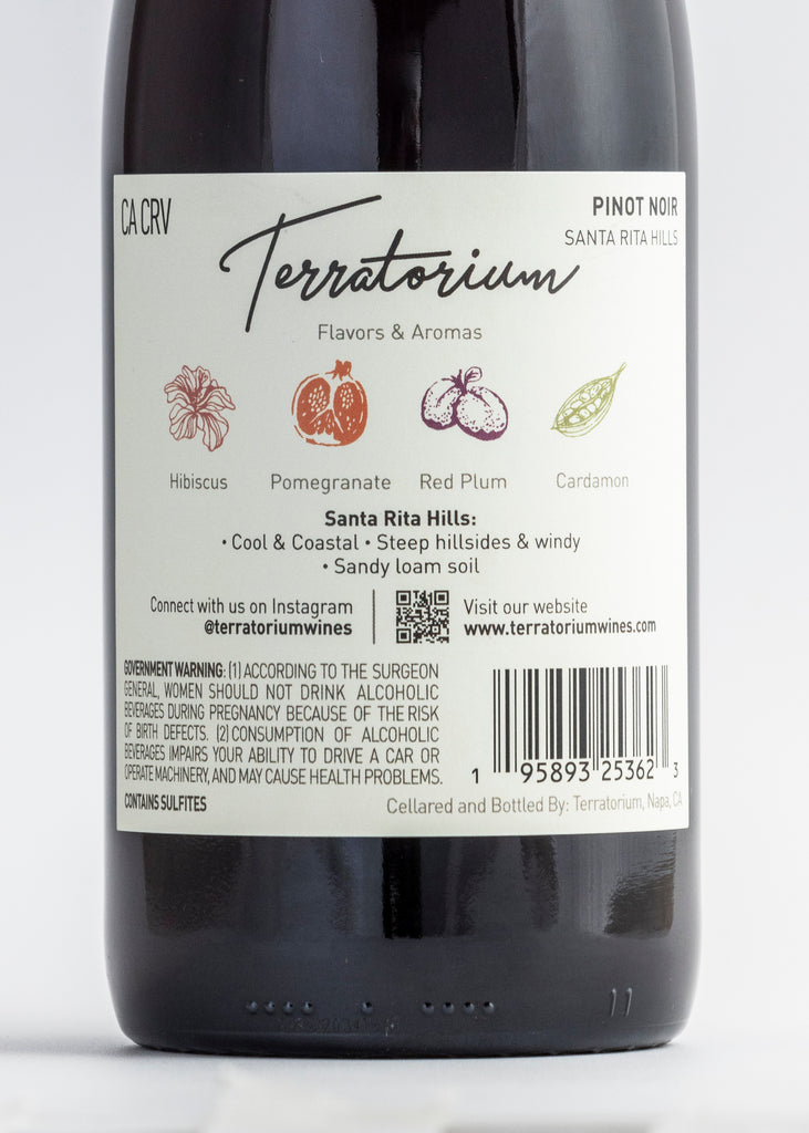 The 2022 Pinot Noir is a bright, vibrant, garnet- red wine layered with fruit, floral, and spice. Flavors of pomegranate and red plum are blanketed in an aroma of complex hibiscus. In the background, there are aromas of cardamon and spice that make for a continuously evolving experience as the wine opens in your glass. On the palate, the wine is vibrant and medium-structured, showcasing the terroir of Sta. Rita Hills and the Drum Canyon Vineyard. The high acid profile is balanced by rounded- medium tannins resulting in a wine that is full of verve and complexity. This wine has the capability to pair well with a wide range of foods.