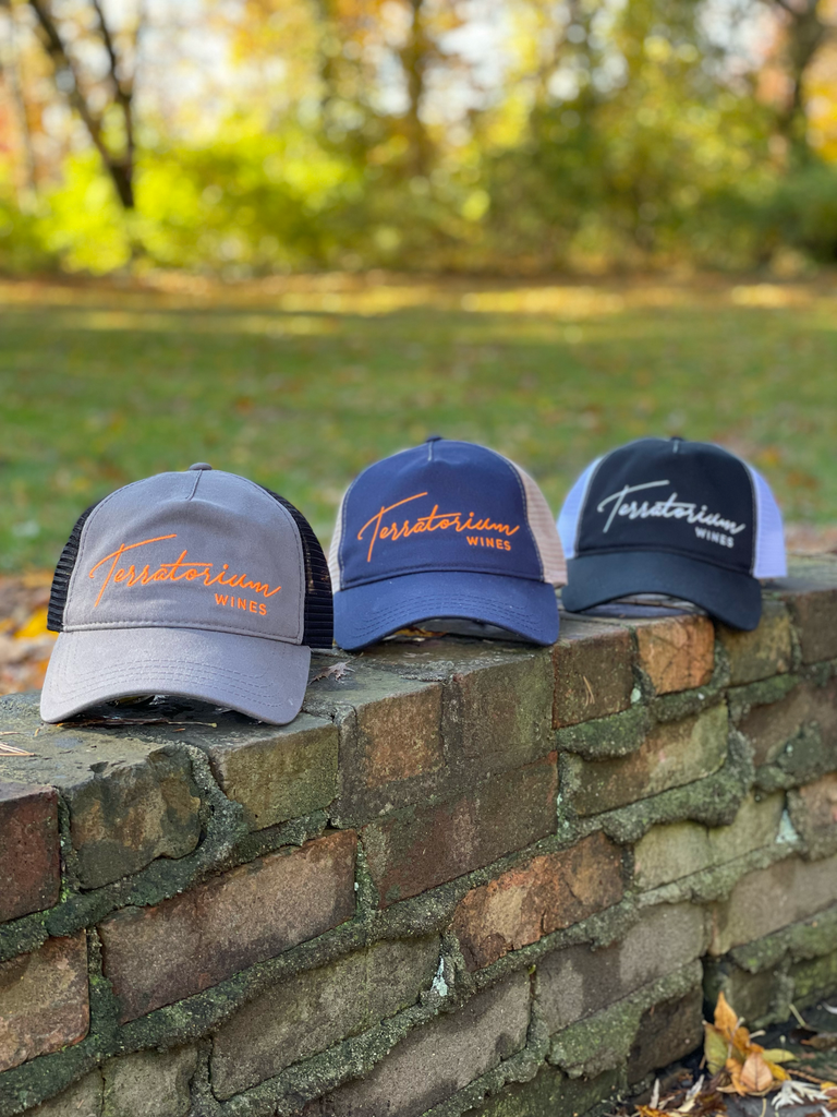 - Charcoal and orange embroidered Terratorium wordmark