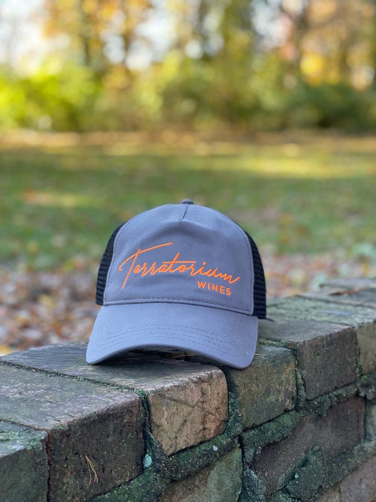 Terratorium Trucker Hat - Charcoal, Orange & Black Mesh